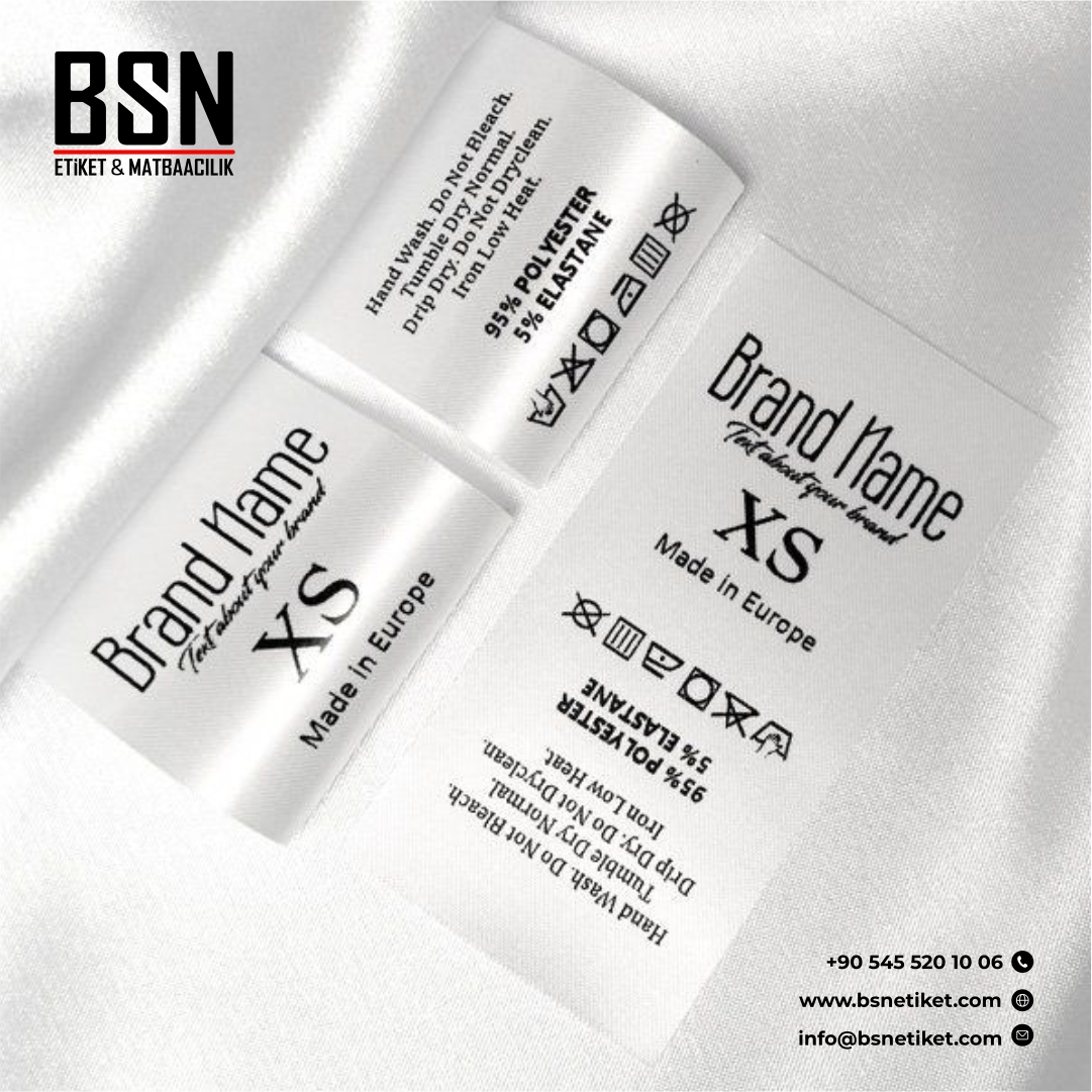 • Yıkama Talimatı; satın alınacak veya kullanılacak ürün ile alakalı içerik bilgilerini, ürünün nasıl ve kaç derecede yıkanması gerektiğini, nasıl ütülenmesi gerektiğini çeşitli yıkama sembolleri ile veya yazılı bir şekilde müşteriyi bilgilendirmek ya da uyarmak amacıyla kullanılan etiketlerdir. Yıkama talimatının içerisinde üründe kullanılan kumaşın içerik bilgileri ve uyarı yazıları da yer almaktadır. Aynı zamanda logolar, web siteleri ve iletişim bilgileri ile markalama gibi birçok seçenekte kullanılabilir.